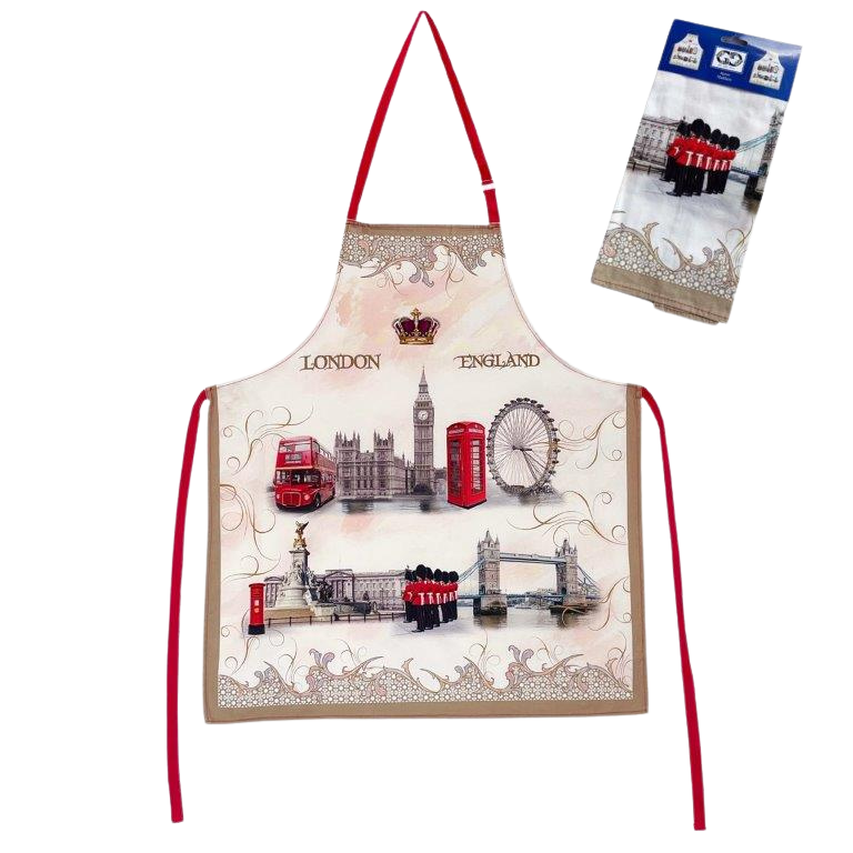 LP95261 This chef's apron highlights lots of famous London landmarks for the chef in your...
